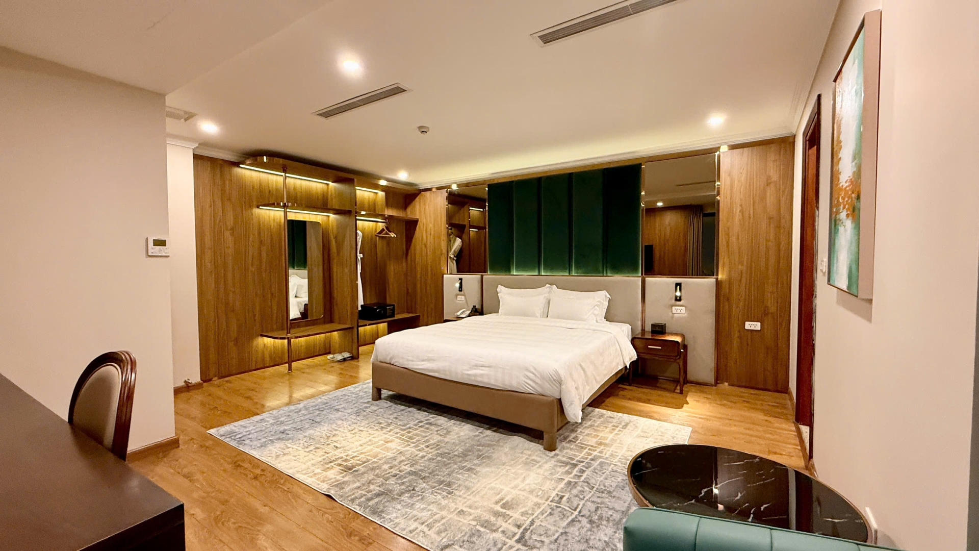 With a generous area of nearly 25m², this elegantly designed room adheres to the finest 5-star standards, featuring expansive windows that flood the space with natural light